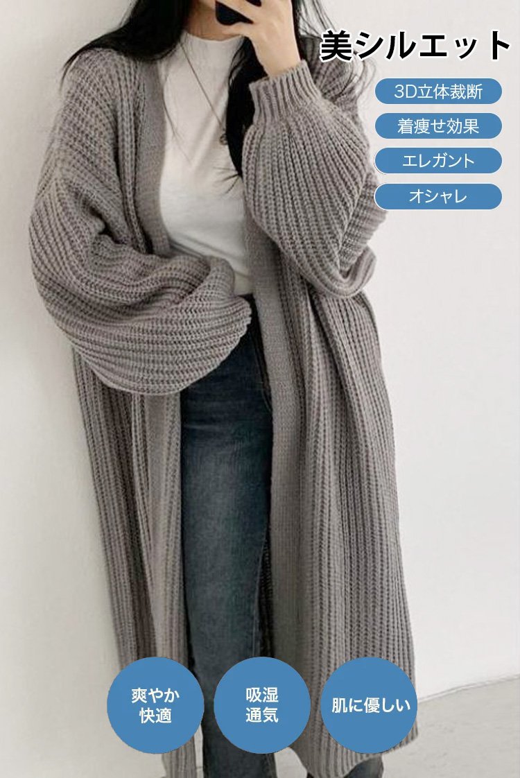 ゆったりロング丈ニットカーディガン
